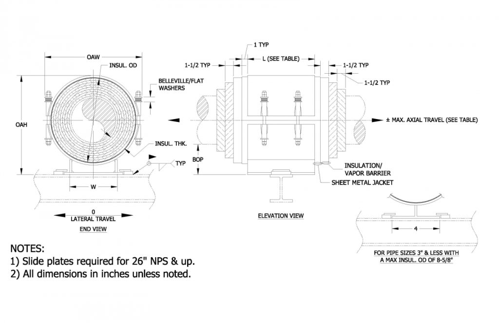 – Teflon®/2B SS 304 slide plates on shoe and supporting steel on sizes 26” and larger