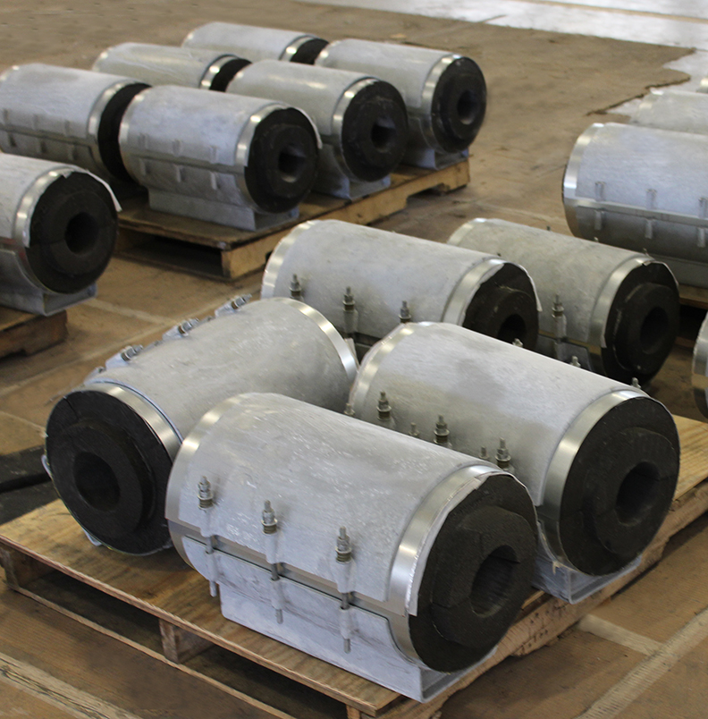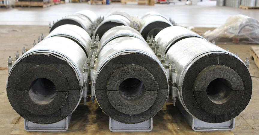 Rilco produces pre-insulated pipe supports using various insulation types including FOAMGLAS®, Perlite, and Mineral Wool.