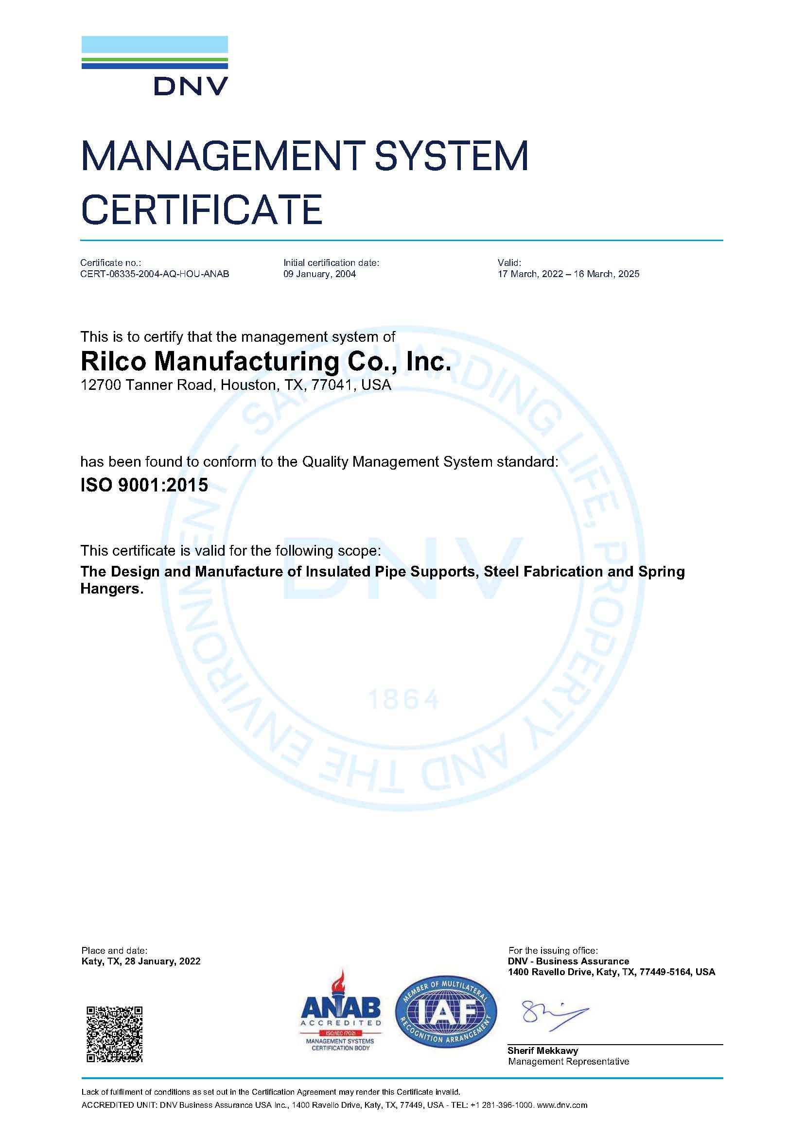 Rilco Manufacturing is certified in accordance with ISO 9001:2015 for the design and manufacture of: