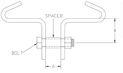 Components: Two half-clamps, pipe spacer and bolt with nut assembled.