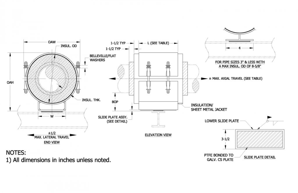 – Teflon®/2B SS 304 slide plates on shoe and supporting steel