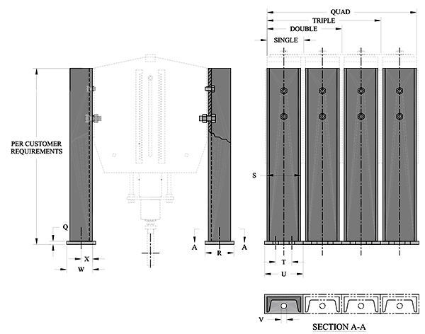 Single Unit Assembly | Double Unit Assembly | Triple Unit Assembly | Quadruple Unit Assembly | Supporting Channel Size | Q | R | S | U | V | T | W | X |