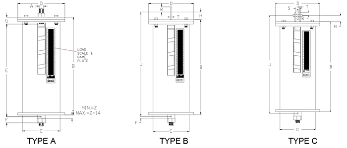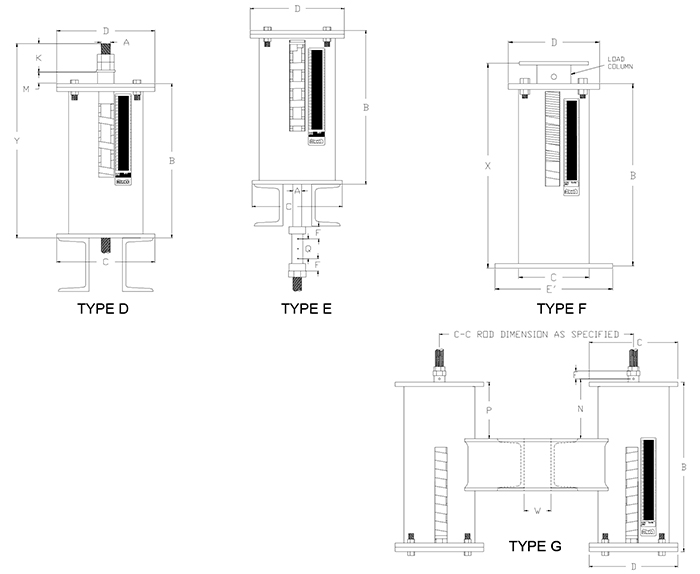 The RVS-98 hanger is offered in seven basic types as shown above in Types A, B, C, D, E, F and G.